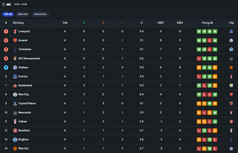 Một điểm nổi bật khác là Vebo TV cung cấp lịch sử kết quả theo vòng đấu, giúp người hâm mộ dễ dàng so sánh phong độ của các đội qua từng giai đoạn mùa giải. Fan có thể thấy đội bóng yêu thích thắng hay thua bao nhiêu trận trong 5 vòng gần nhất, từ đó có cái nhìn tổng quan về xu hướng thi đấu.