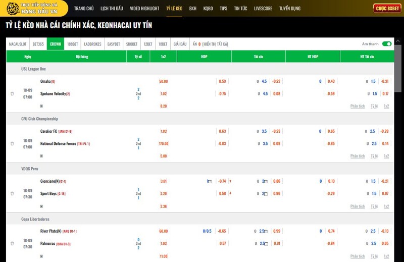 - Đa dạng thể loại kèo cược: Kèo tài xỉu (over/under), kèo châu Âu (1×2), kèo châu Á (handicap), kèo phạt góc, thậm chí cả kèo thẻ phạt cho các trận lớn.