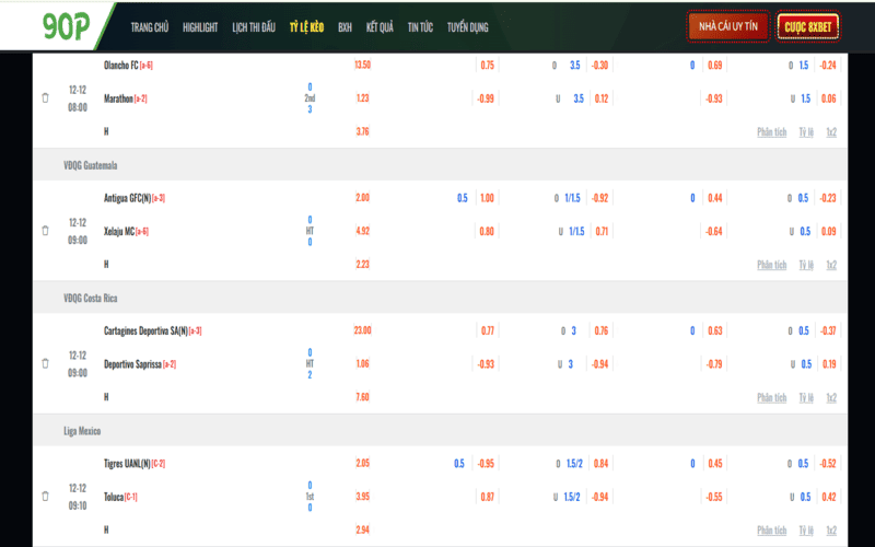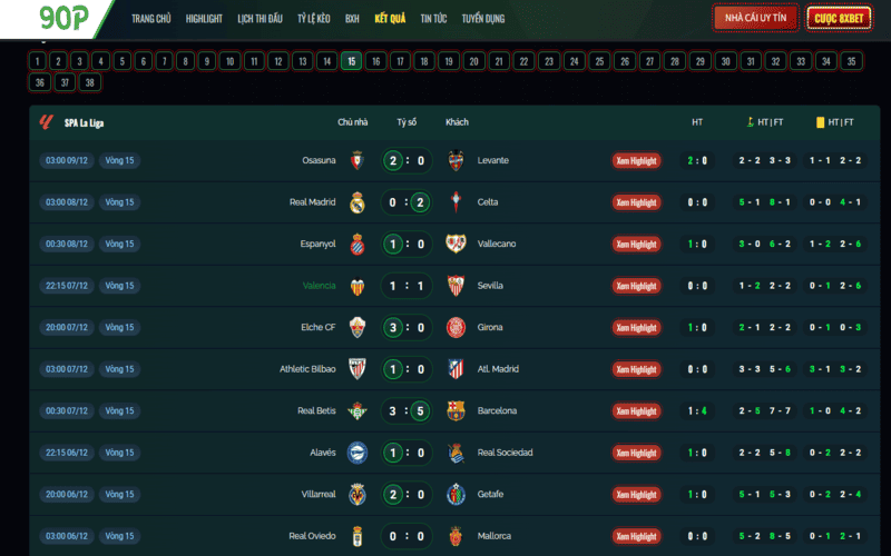 90P TV cập nhật kết quả theo thời gian thực
