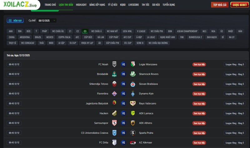 Và điều tôi đánh giá rất cao là lịch thi đấu cúp c3 (Europa Conference League) cũng được cập nhật cực kỳ đầy đủ – trong khi nhiều trang khác lại ít chú trọng đến giải đấu này.